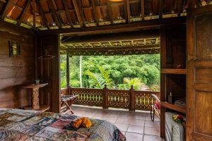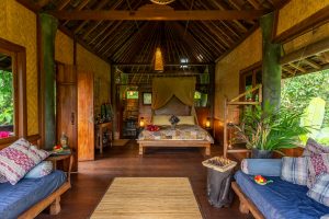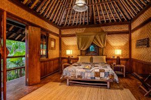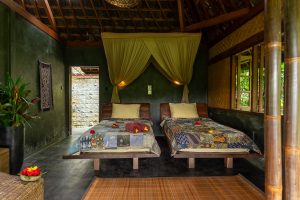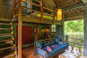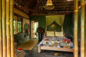 Each bungalow at Bali Eco Stay is a work of art — open to the jungle, built from natural materials, surrounded by water and greenery.